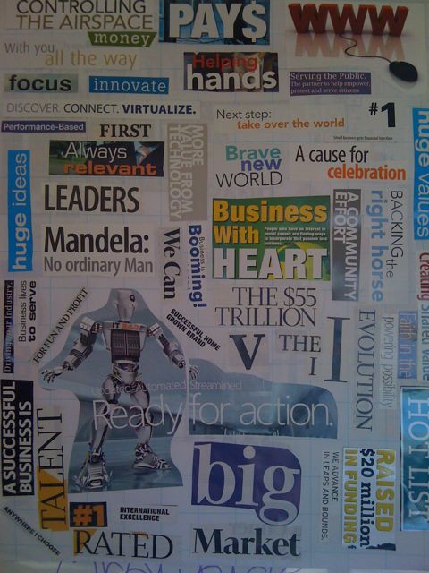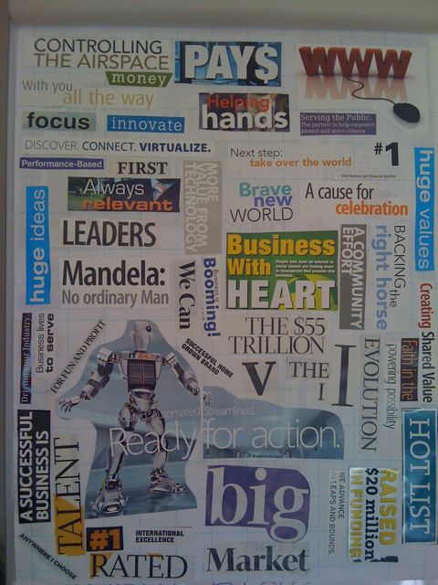 Start flipping through the magazines/books and tear or cut out words, photos, phrases which appeal to you. Even if they are random at this stage, grab the headlines of interest. Once you have gone through as much material as you need, you have your “goals” for your vision board.